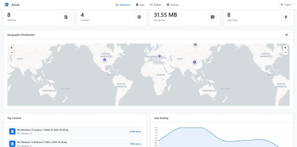 The web-based control panel provides threat actors with a live dashboard featuring geographic visualization via an interactive world map that displays the locations of infected systems.