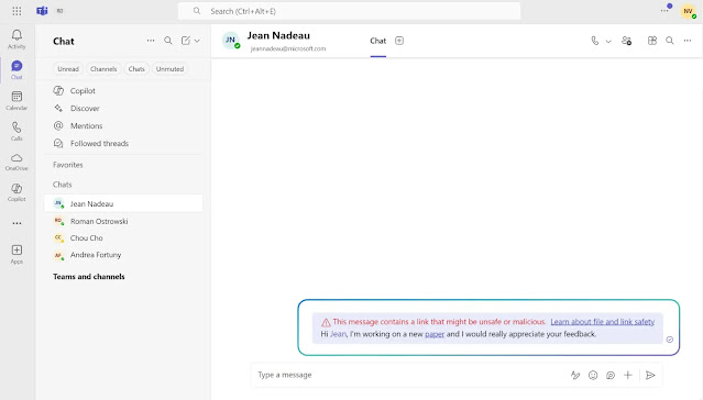 Microsoft is enhancing the security of its Teams collaboration platform by introducing an automatic warning system that flags malicious URLs in chat messages.