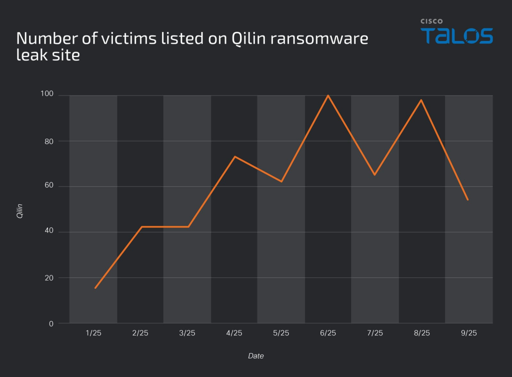 The Qilin group, which has maintained operations since July 2022, continues to pose a significant threat with over 40 victim postings per month on its leak site during the second half of 2025.