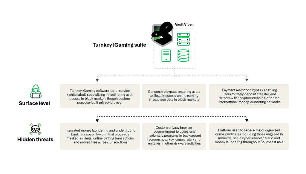 Vault Viper’s malware ecosystem not only enables clandestine access and surveillance of users but also siphons personal and financial data from unwitting gamblers, incorporating stolen credentials and illicit payments into extended cybercrime operations.