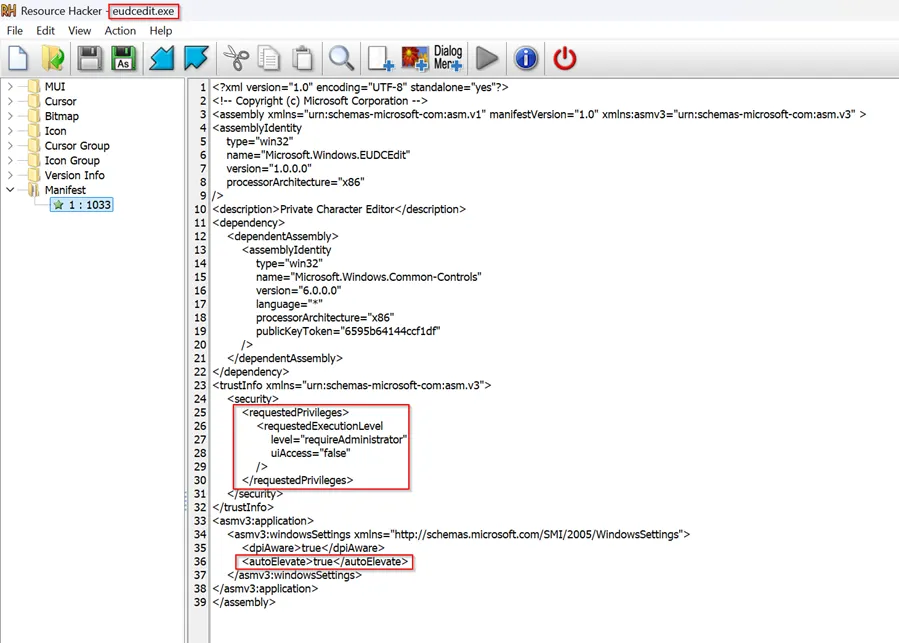 The exploit works by taking advantage of eudcedit.exe’s application manifest configuration, which contains specific instructions for Windows to elevate the program automatically.